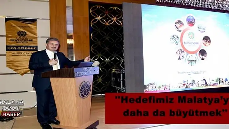 Belediye Başkanı Ahmet çakır, Malatya Belediyesinin Büyükşehir statüsüne kavuşmadan önce 212 kilometre karelik hizmet alanının olduğunu, yeni statü ile birlikte hizmet alanının 60 kat artarak 12 bin 312 kilometre kareye çıktığını hatırlatarak, "3 yıllık büyükşehir sürecinde önemli hizmet ve yatırımlar yaptık. Hedefimiz Malatya’yı daha da büyütmek” dedi. Malatya genelinden sorumlu olan Büyükşehir Belediyesinin, 13 ilçe, 716 mahalle ve bin 150 mezraya hizmet götürdüğünü belirten Başkan Çakır, yapılan faaliyetler hakkında bilgiler vererek, “İmar, ulaşım, turizm ve jeolojik gibi ana planlar tamamlandı. KUDEB’le kültür varlıklarına sahip çıkıldı, MASKİ’nin 2071 hedefleri doğrultusunda 325 milyon tutarında 2 bin 567 km altyapı hizmeti yapıldı. Kentlere kimlik kazandıran caddelerle ilgili olarak önemli caddeler açtık. Küçük caddeleri bulvar haline getirdik, Güney ve kuzey kuşak yollarının önemli mesafelerini açtık. Bunun yanında Malatya’ya özgü bir çevreyolu düzenledik ve toplamda 3 bin 253 km asfaltlama yaptık. 584 de km de yeni yol açtık, yine 2 bin 342 km yol genişletme çalışmaları, 42 köprü ve 30 adet menfez yaptık. Şire Pazarı, Akpınar ve Bakırcılar Çarşısını düzenledik, 8 adet üst geçit, 15 adet kavşak yaptık” ifadelerini kullandı.