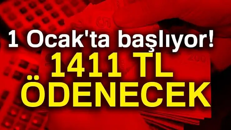 1 Ocak'ta başlıyor! 1411 TL ödenecek