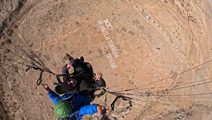 Adıyaman´ın Tut ilçesine Fransa´dan gelen Valentin Berland, 100´üncü Yıl Yamaç Paraşütü etkinliğinde gökyüzünde süzüldü.