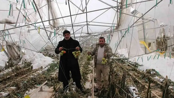Seranın sahibi Abuzer Hacıoğlu, 300 ton domates, 180 ton salatalık ürün kaybı yaşadıklarını ve iskeletle birlikte 20 milyon TL´ye yakın zararlarının olduğunu söyledi.