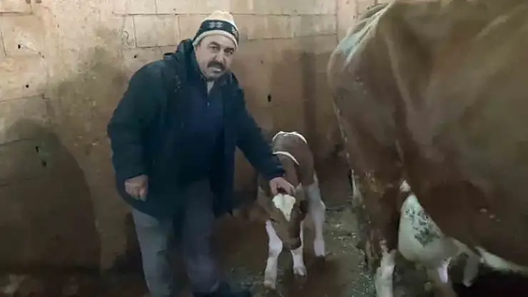 Kahramanmaraş´ın Pazarcık ilçesinde yaşayan Şeref Uzdilli, 15 gün erken doğan buzağılarına 'Deprem 1' ve 'Deprem 2' ismini verdi. Uzdil
