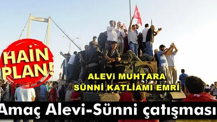 15 Temmuz gecesi darbe planlayarak ülkeyi kana bulayan FETÖ'cü hainler, başarılı olamama ihtimaline karşı iç savaş bile kurgulamış. Bunun için de MİT Tırlarının durdurulduğu ve Reyhanlı katliamının tezgahlandığı Hatay hedef seçilmiş. Adli kayıtlara da geçen olay, darbecilerin Türkiye’de bir iç savaş çıkarmak istedikleri bunun için de Alevi-Sünni, Kürt-Türk çatışması planladıklarını ortaya koydu. Cuntacılar 15 Temmuz gecesi Hatay Serinyol Jandarma Eğitim Alay Komutanlığında gece 01.00’de toplantı yaptı. Toplantıya asker olmayan ama üzerine asker elbisesi bulunan iki sivil de katıldı. Bu sivillerden biri Hatay’daki bir Alevi mahallesinin muhtarı, diğeri de muhtarın bir yakını. Muhtara albay üniforması giydiriliyor. Toplantıda alay komutanı muhtara "Şu anda silah kullanabilecek hazırda kaç kişin var" diye sorunca muhtar "300 kişi hazır" cevabını verdi. Bunun üzerine alay komutanı muhtara valiliğe doğru harekete geçme talimatı verdi Valiliğin bulunduğu yer Sünni mahallesi. Bu 300 kişi askerle birlikte 03.00’te talimatla sünni mahallesine saldırıya geçecekti. Amaç Alevi-Sünni çatışması çıkarmaktı. Ancak hainlerin planı darbe tamamıyla püskürtülünce bozuldu.