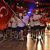 Bayrağı öperek teslim alan Vali Aydın Baruş ile sporcular hatıra fotoğrafı çektirdi.