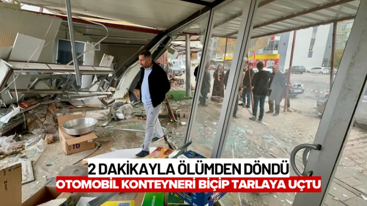 Malatya'da sabah saatlerinde yaşanan kazada, kontrolden çıkan bir otomobil yol kenarındaki konteyner işyerlerini biçerek tarlaya uçtu. Mantı dükkanında çalışan kadın esnaf, saniyelerle ölümden döndü.