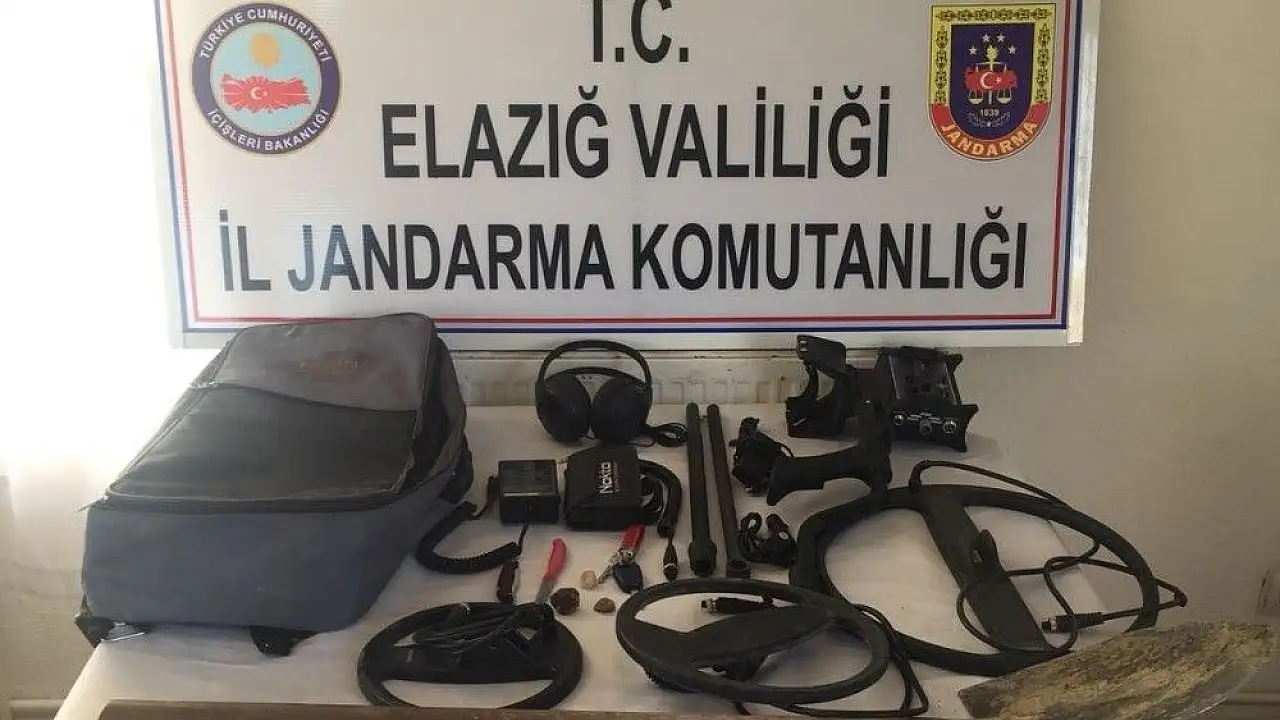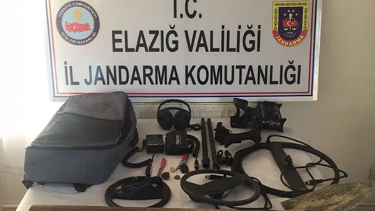 Elazığ’da 2 şüpheli, 1 dedektör ve çeşitli kazı malzemeleri ile yakalandı.