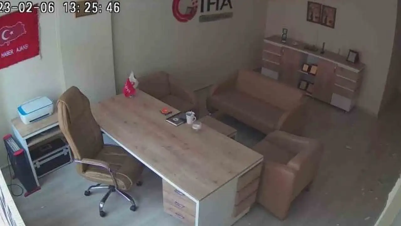 Sabah 04.24´te Pazarcık merkezli 7,7 şiddetindeki depremin ardından bundan bağımsız olarak 7,6 şiddetinde öğle saatlerinde bir deprem daha yaşandı. Deprem anı güvenlik kamerasına yansıdı. İhlas Haber Ajansı Malatya Bürosu´ndaki dolaplar ve malzemeler depremin etkisiyle yerinden fırladı. O anlar an be an kaydedildi. Binada kimsenin olmaması muhtemel bir yaralanmanın da önüne geçti.