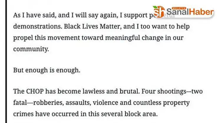 Seattle Emniyet Müdürü Carmen Best yaptığı açıklamada polis müdahalesinin bölgedeki şiddet olaylarının ardından geldiğini belirterek, "Söylediğim gibi barışçıl gösterileri destekliyorum. Black Lives Matter (Siyahilerin hayatı değerlidir) gibi ben de toplumumuzda anlamlı değişime doğru hareketi teşvik etmek istiyorum. Ancak bu kadarı fazla" ifadelerini kulandı.