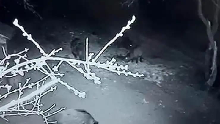Olay dün gece saatlerinde Elazığ Safran Mahallesi Ufuk Sokakta yaşandı. Aç kalan domuz sürüsü, gece saat 03.21 sularında merkezde bulunan bir evin bahçesine girdi. Bir süre yiyecek arayan domuz sürüsü, daha sonra gözden kayboldu.