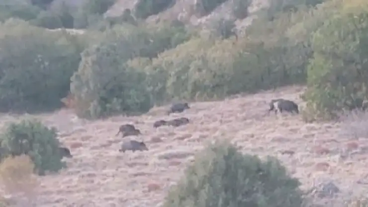 Domuzların sürüler halinde gezindiğini belirten Özcan Çelik, "Hayvanlarımı getirmek için dağa gitmiştim, aninden karşıma domuzlar çıktı. Domuzlar yaklaşık 20 taneydi. Ben de cebimden çıkardığım telefonumla onları görüntüledim. Yılın bu mevsiminde sürüler halinde geziyorlar" dedi.