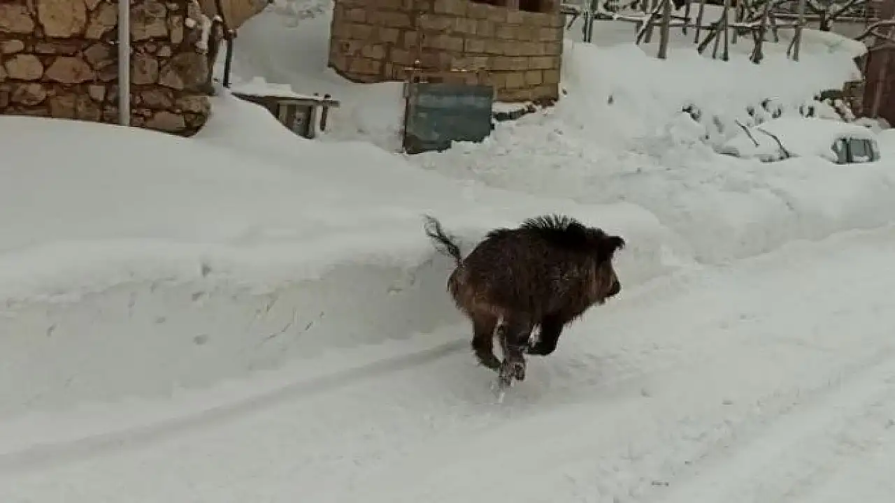 Adıyaman´ın Çelikhan ilçesinde kar yağışından dolayı aç kalan yaban domuzları ilçe merkezine indi.