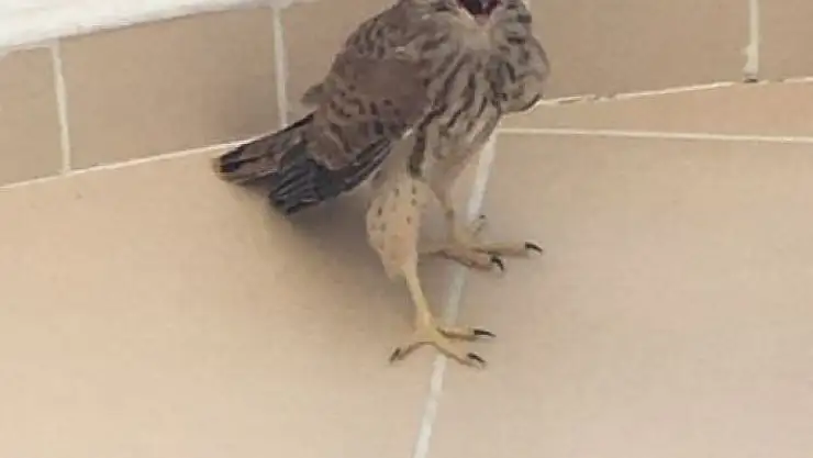 Adıyaman´da, bir ikametin balkonuna aç ve bitkin düşen atmaca, vatandaşlar tarafından beslendikten sonra doğasına geri döndü.