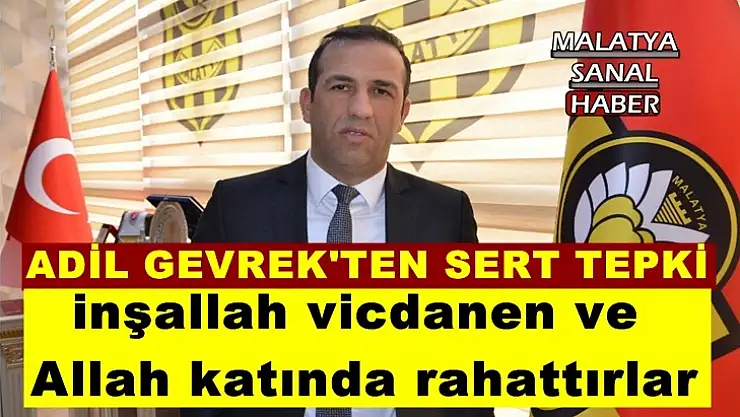 Evkur Yeni Malatyaspor Kulübü Başkanı Adil Gevrek, bazı spor yorumcularının ‘Yeni Malatyaspor son maçlarını kendisi için oynamayacak’ yönündeki açıklamalarına sert tepki göstererek, "Bu tür yorumları yapan arkadaşlar inşallah vicdanen ve Allah katında rahattırlar. Hocamızın açıklamasından yola çıkıp bu kanıya varmak, açık söylüyorum suçtur" dedi.