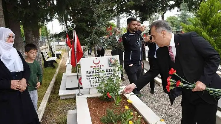 Yapılan duanın ardından Vali Mahmut Çuhadar ve protokol üyeleri şehit mezarlarını tek tek ziyaret ederek karanfil bıraktı.