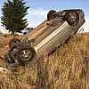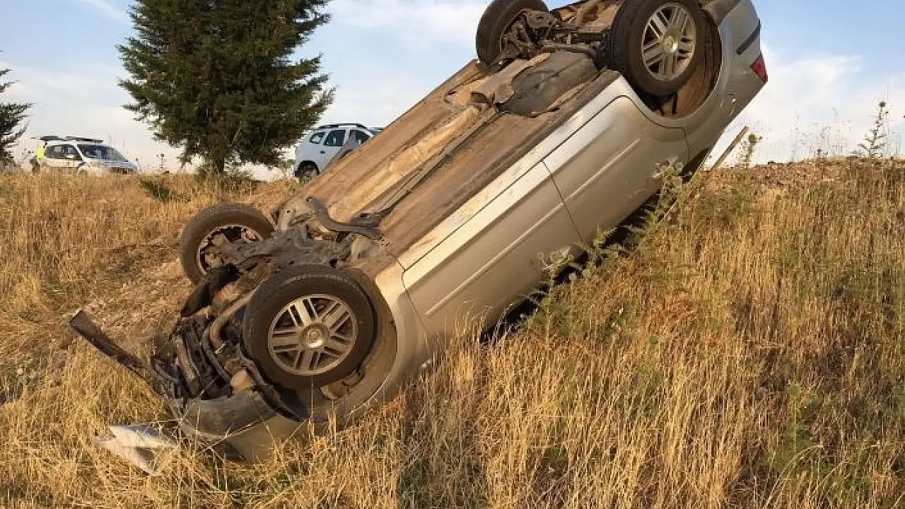 Adıyaman´ın Kahta ilçesinde yoldan geçen keklik sürüsüne çarpmak istemeyen ototmobil şarampole yuvarlandı.