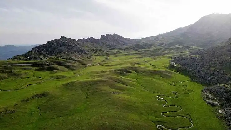 Adıyaman´ın Gerger ilçesinde karların erimesiyle Yeşilyurt köyünün yaylası Abacığ´da derelerin oluşturduğu menderesler, çevresini saran ilkbahar renkleriyle dikkat çekiyor.