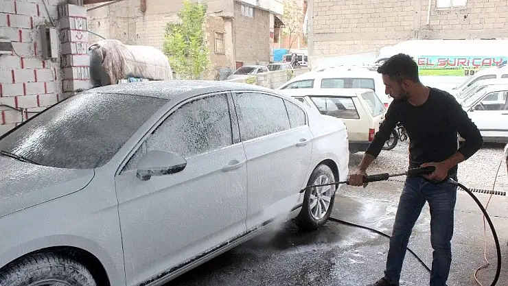 Oto yıkamacıların önünde araçlarını yıkatmak isteyen araçlar kuyruk oluşturdu.