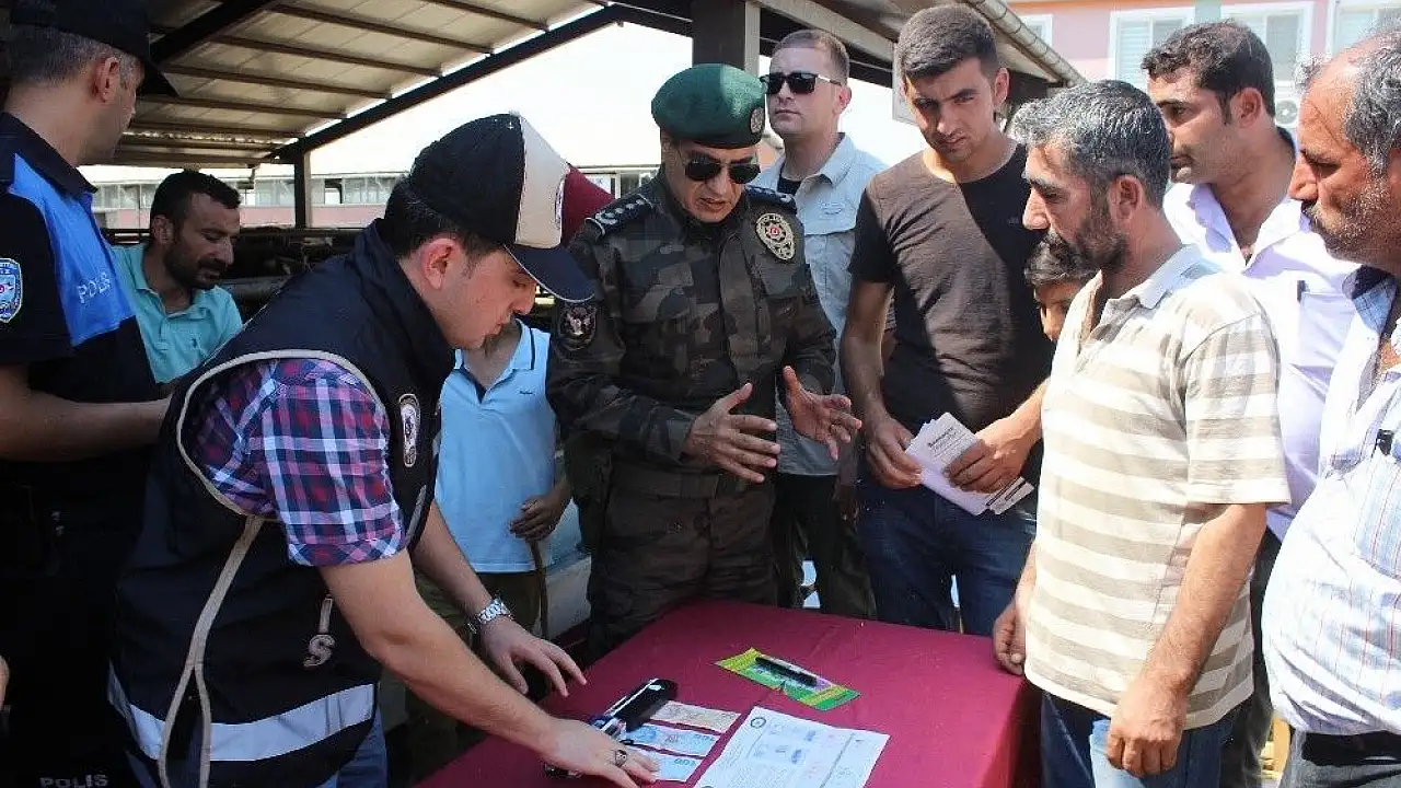 Adıyaman Emniyet Müdürü Metin Alper, kurban pazarında bulunan hayvan satıcılarını tek tek gezerek, sahte para ve dolandırıcılık olaylarına karşı uyardı. sahte paraların tespit edilebilmesi için yapılması gerekenleri anlatan Emniyet Müdürü Alper, hayvan satıcılarına sahte parayı belirleyen kalem de dağıttı.