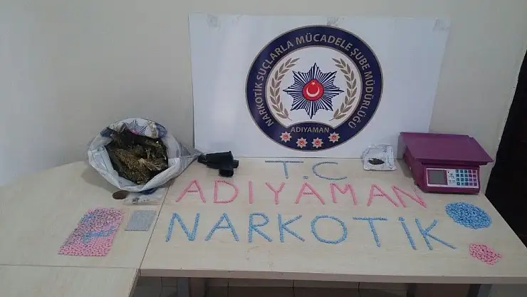 Edinilen bilgiye göre, Narkotik Suçlarla Mücadele Şube Müdürlüğü ekiplerince Kahta ilçesi Menderes mahallesinde bulunan K.Ç’ye ait ikamete operasyon yapıldı. Yapılan operasyon kapsamında ikamette bin 680 adet ekstazi uyuşturucu hap, bir kilo 300 gram esrar maddesi ile bir adet ruhsatsız tabanca ele geçirildi. Ele geçirilen uyuşturucu maddeleriyle tabanca muhafaza altına alınırken konuyla ilgili K.Ç., gözaltına alındı. Gözaltına alınan şahıs sorgulanmak üzere polis merkezine götürüldü.
