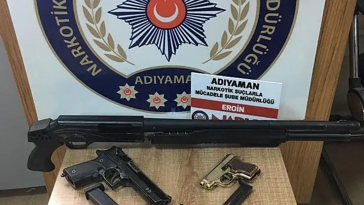 Edinilen bilgilere göre, kent merkezinde bulunan 5 farklı adres Narkotik Suçlarla Mücadele Şube Müdürlüğü ekiplerince uyuşturucu operasyonu yapıldı. Gerçekleştirilen operasyonda şahısların evlerinde yapılan aramalarda 2 adet tabanca, 1 adet pompalı av tüfeği ve 2,5 gram eroin maddesi ele geçirildi. Ele geçirilen malzemelere el konulurken Y.E., F.B., F.D., isimli şahıslar gözaltına alındı. Emniyete götürülen ve burada işlemleri tamamlanan 3 şahıs çıkarıldıkları mahkemece tutuklandı.