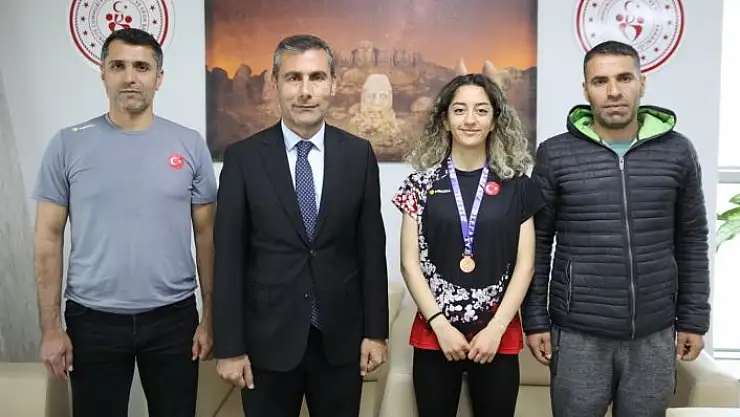 Elde ettikleri başarıları İl Müdürü Fikret Keleş ile paylaşan Bedriye Tekin, Atletizm İl Temsilcisi Mehmet Seyit Durmuş ve Antrenör İbrahim Sabaş, hatıra fotoğrafı çektirdi.