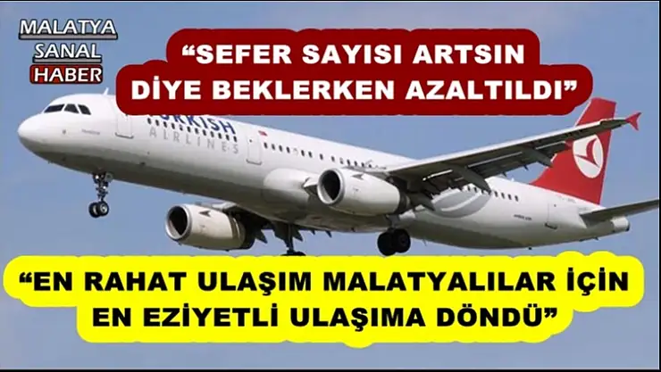 CHP Genel Başkan Yardımcısı Veli Ağbaba “ Malatya-Ankara uçak seferlerinin artırılması beklenirken azaltılmasını anlamak mümkün değil.Dünyanın en rahat ulaşım aracı olan uçak, düzensiz saatleri ve azaltılan seferler nedeniyle Malatyalılar için dünyanın en eziyetli ulaşım aracına dönmektedir.”ifadelerini kullandı.