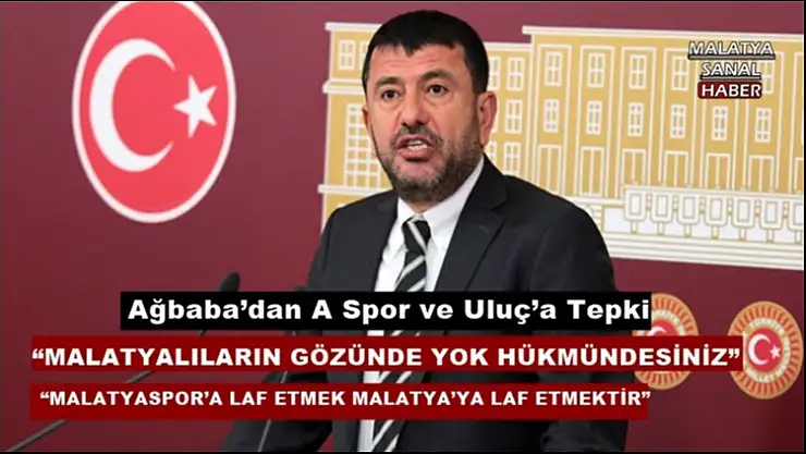 Uluç’un programda dile getirdiği “Aslında beni sevindiren Fenerbahçe’nin kazanması değil, aslında beni mutlu eden Malatya’nın kaybetmesi. Futbolu bu kadar çirkinleştiren ve bu kadar kötü oynayan bir takımın hiç kimseyi yenmeye hakkı yok. Böyle bir şeye kimsenin hakkı yok” ifadelerinin tüm Malatyalıları rencide ettiğini kaydeden Veli Ağbaba, “Hiç kimse Malatyalıların ortak değeri olan Yeni Malatyaspor’a hakaret edemez. Yeni Malatyaspor Süper Lig’in en istikrarlı ve başarılı takımlarından biridir. Kendi küllerinden doğup, süper ligde başarılı sonuçlar almaya devam etmektedir. Kendisine spor yorumcusu diyerek ekranda ahkam kesenler, bu takımın hangi şartlarda, hangi yokluklarla tırnaklarıyla kazıyarak bu noktaya geldiğini unutmamalıdır. Kendi küllerinden yeniden doğup , büyük başarılara imza atan bir Anadolu takımını övmek yerine yermeyi tercih eden kişiler, sadece takıma değil o takımın taraftarlarına da, takımın şehrine de hakaret etmektedir.Bu kişilerin Malatyalıların gözünde gözünde yok hükmündedir.A Spor kanalı Malatyaspor’a ve Malatyalılara yapılan bu hakaretten dolayı mutlaka özür dilemelidir” dedi.