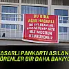 Ağır hasarlı pankartı asılan binayı görenler bir daha bakıyor