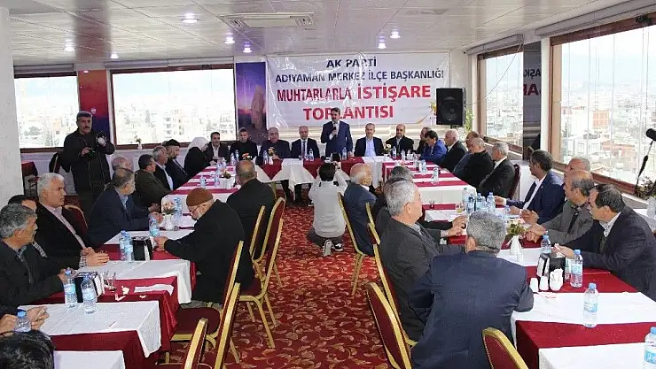 İstişare toplantısına AK Parti Adıyaman Milletvekili Salih Fırat, Belediye Başkanı Hüsrev Kutlu, İl Başkanı Mehmet Erdoğan, İl Genel Meclis Başkanı Mehmet Can Erdoğan, Merkez İlçe Başkanı Mustafa Alkayış, Kadın Kolları Başkanı Perihan Gümüş, Gençlik Kolları Başkanı Oğuz Mutlu, Adıyaman Köy ve Mahalle Muhtarları Mesleki Dayanışma Derneği Başkanı Abdulkadir Geylani Taş, Köy ve Mahalle Muhtarları Yardımlaşma ve Dayanışma Derneği Başkanı Hanifi Şaşmaz ve mahalle muhtarları katıldı.