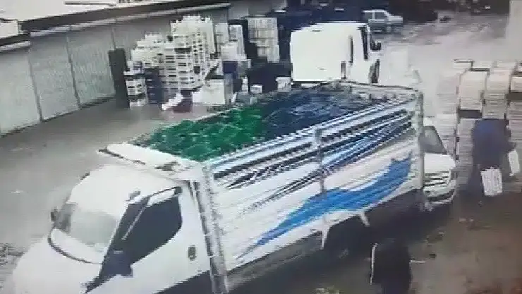 Kaza, 3 gün önce merkez Karşıyaka Mahallesinde bulunan Sebze Halinde meydana geldi. Alınan bilgiye göre, bir kamyonet geri geri giderken sürücüsünün fren yerine gaza yüklenmesi sonucu, pikaba çarptı. Kazadan ise pikaptan kasa indiren 2 kişi saniyelerle kurtuldu. O anlar ise güvenlik kamerasına saniye saniye yaşandı.