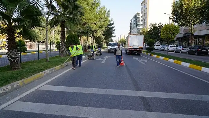 'Adıyaman Belediyesi kaldırım taşlarını boyadı'