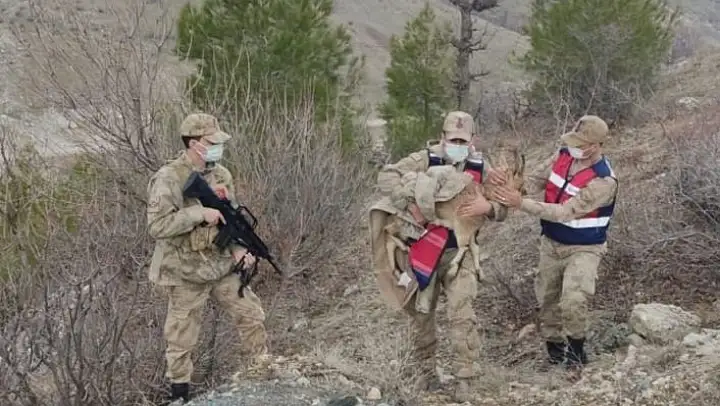 Yaralı dağ keçisi daha sonra Doğa Koruma ve Milli Parklar Müdürlüğü ekiplerine teslim edildi.