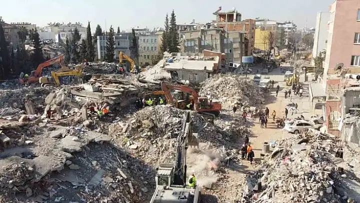 Yüzlerce yapının yıkıldığı Adıyaman´da enkazlar dron ile görüntülendi. Yapıların üzerinde çok sayıda iş makinesi ve ekipler ayrıştırma çalışmasını yürütüyor. Enkazlar temizlenmeye çalışılıyor.