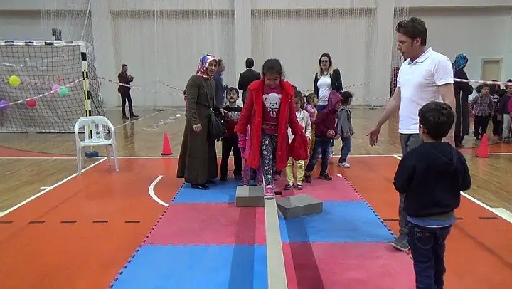 Yeni Mahalle Kapalı Spor Salonunda gerçekleştirilen Fiziksel Etkinlik Şenliğine gelen anaokulu öğrencileri burada bulunan platformlardan geçerek burada hem fiziksel yeteneklerini sergilediler hem de doyasıya eğlendiler. İl genelinde faaliyet gösteren 48 anaokulundan toplam bin 200 öğrenci, 3 gün boyunca Fiziksel Etkinlik Şenliğinden faydalanacak.