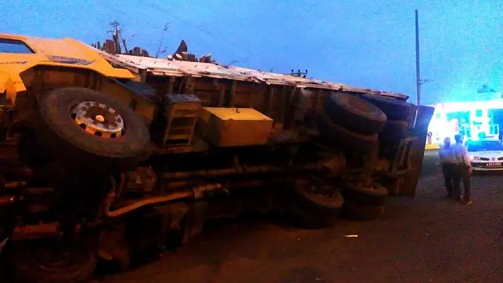 Edinilen bilgiye göre, Karapınar mahallesi Türkiye Petrolleri Kavşağında H.Y. yönetimindeki 02 HN 269 plakalı odun yüklü kamyon sürücüsünün direksiyon hakimiyetini kaybetmesi sonucu yan yattı. Kamyonda bulunan odunlar yola savruldu.
