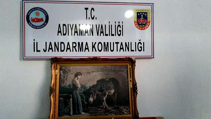 Adıyaman'ın Kahta ilçesinde İl Jandarma Komutanlığı ekipleri bir otomobilin bagajında piyasa değeri 300 bin TL olan Filippo Palizzi-1871 yazılı tarihi eser yağlı boya tablo ele geçirildi.