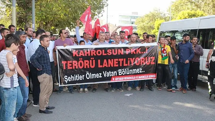 Batman'da hain terör örgütü PKK tarafından yola tuzaklanan EYP'nin infilak ettirilmesi sonucu hayatını kaybeden 8 asker için Adıyaman'da düzenlenen yürüyüşte terör lanetlendi. Gölbaşı Caddesi Mimar Sinan Parkı önünden başlayan ve onlarca insanın Türk bayrakları ile katıldığı yürüyüşte 'Şehitler ölmez vatan bölünmez' sloganları atıldı. Demokrasi Parkı önüne kadar gerçekleştirilen yürüyüş sonrasında şehitler için saygı duruşunda bulunularak, İstiklal Marşı okundu.
