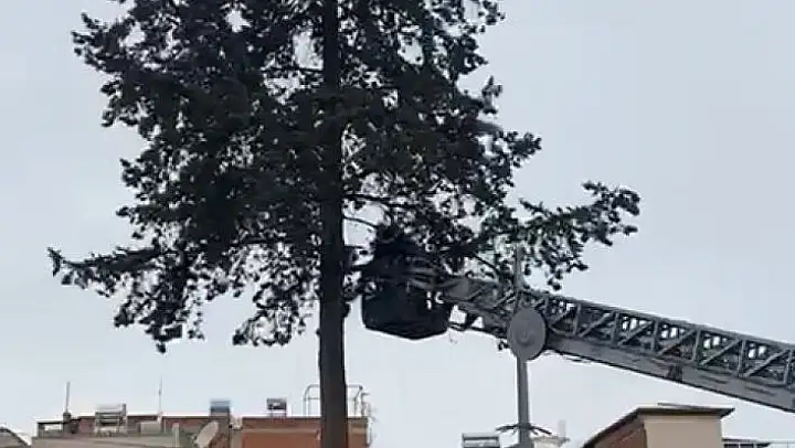 'Ağaçta mahsur kalan kedi kurtarıldı'
