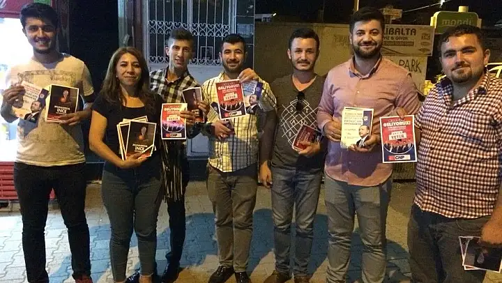 Adıyaman'da AK Parti ve CHP'li gençler partilerinin broşürlerini karşılıklı vererek birbirlerini mitinge davet etti.
