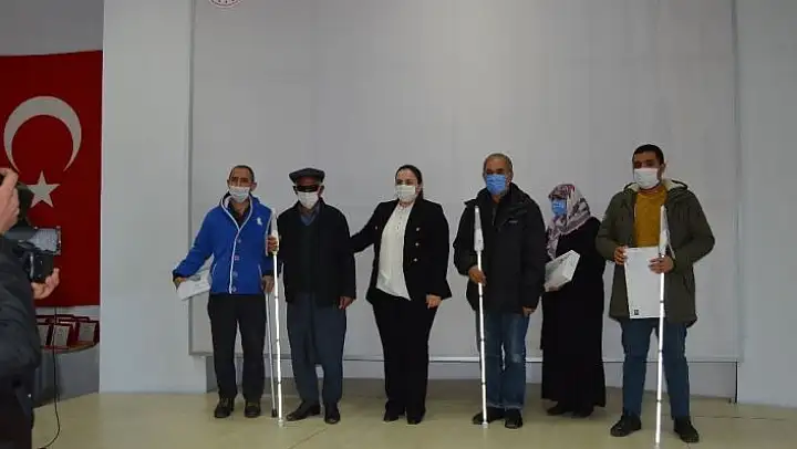 Bastonlar Besni Sosyal Hizmet Merkezi konferans salonunda gerçekleştirilen program ile görme engellilere verildi.
