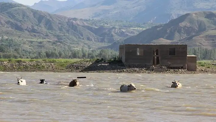 Sivas´ta Suşehri ilçesinde bulunan Kılıçkaya Barajı yaşanan kuraklık sebebiyle adeta hayvanlara mera oldu. Büyükbaş hayvanların barajda karşıdan karşıya geçmesi ise belgeselleri aratmadı.