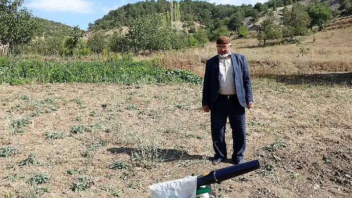Ekinözü ilçesine bağlı 1400 rakımlı Yeniköy Mahallesi'nde yaşayan Abdurrahman Koyun, arı kovanlarını korumak için mutfak tüpüyle çalışan ve 5 dakikada bir ateşleyen kuş kovucu kullanıyor. Özellikle arıları yiyen kuşlar ve bahçeye giren domuzlardan bıkan çiftçi, çareyi 'kuş savar' adı verilen tüp gazla çalışan aleti kullanmakta buldu.