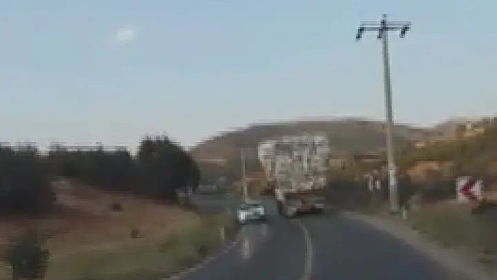 Sivas'ın Divriği ilçesinde aşırı saman yüklü kamyon, akan trafikte diğer sürücülere zor anlar yaşattı. Kamyonun hacminden daha geniş yer tutan yükü, kamyonun şeridinden taşarak diğer şeridi de etkiledi. Virajlarda devrilecek hissi veren aşırı yüklü kamyon arkasından takip eden bir sürücü tarafından cep telefonu ile kaydedildi.