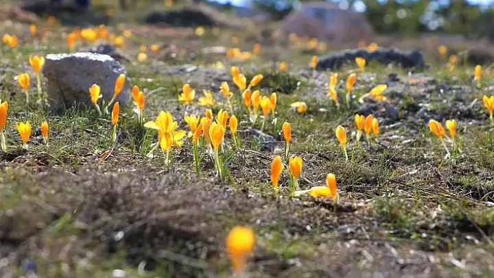 Sivas´ın Nevruz köyü yakınlarında bulunan Nevruz yaylasında baharın müjdecisi olan çiğdem çiçekleri kendini gösterdi.