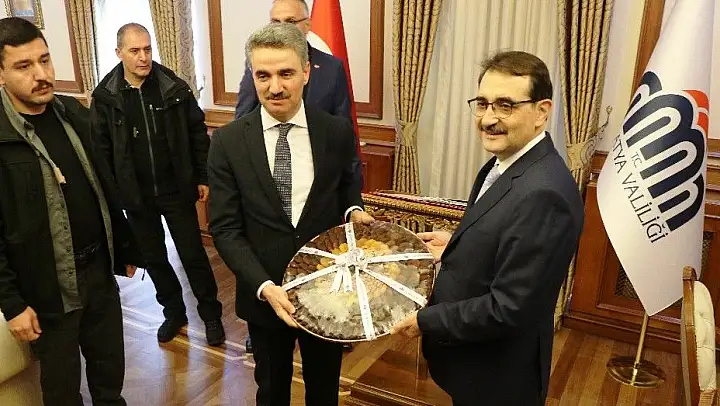 Vali Aydın Baruş tarafından valilik girişinde karşılanan Enerji ve Tabii Kaynaklar Bakanı Fatih Dönmez, daha sonra makama geçti. Burada Valilik Şeref Defteri'ni imzalayan Bakan Dönmez'e Vali Baruş tarafından kayısı takdim edildi.