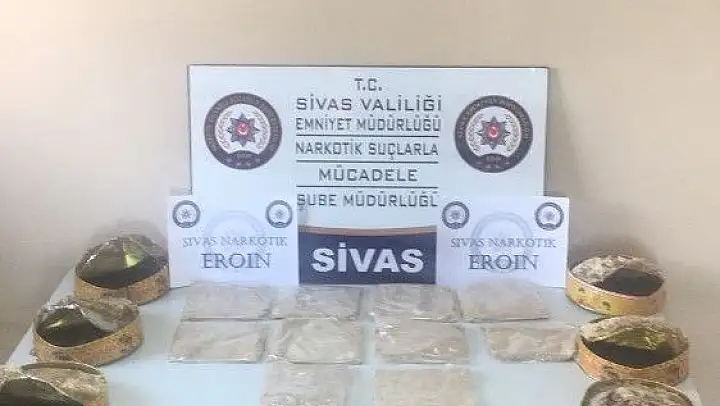 Sivas'ta aldığı bir ihbarı değerlendiren İl Emniyet Müdürlüğü asayiş ekipleri, Sivas'a yolcu otobüsü ile gelen E.P. isimli şahsı şüphe üzerine otogarda yakaladı. E.P.'nin yanında bulunduğu valizlerdeki bal dolu kutularda gizlenmiş 2 kilo 91 gram eroin ele geçirildi. Eroinin narkotik köpekleri yanıltmak için bal dolu kutularda gizlenmiş olabileceği düşünülüyor. Uyuşturucu madde imalatı ve ticareti suçlaması ile gözaltına alınan E.P. emniyette ifadesinin tamamlanmasının ardından adliyeye sevk edilecek.