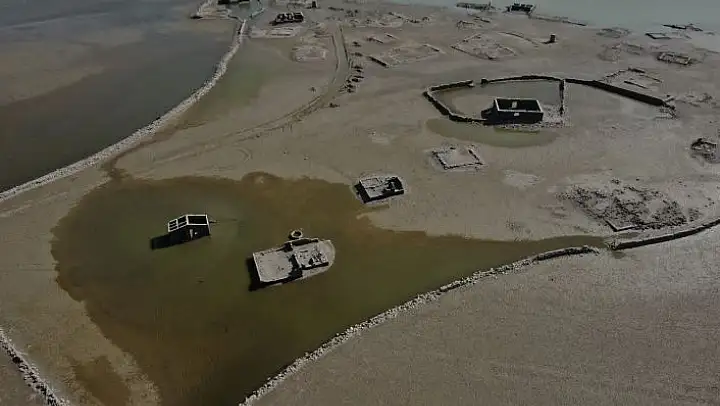 Yağışların azlığı ve yaşanan kuraklık sonrası 30 yıl önce baraj göleti içinde yer alan köyün kalıntıları 5 ay önce ortaya çıkmıştı. Yaz mevsimi nedeniyle suların daha da azaldığı barajda ortaya çıkan gizemli manzara drone ile görüntülendi. Görüntülerde, ortaya çıkan taş ev kalıntıları, çeşme ve iki adet köprü de gün yüzüne çıktı. Boşalan baraj göletinin arazisinde ise çevre halkı tarafından çeşitli ürünler ekiliyor.