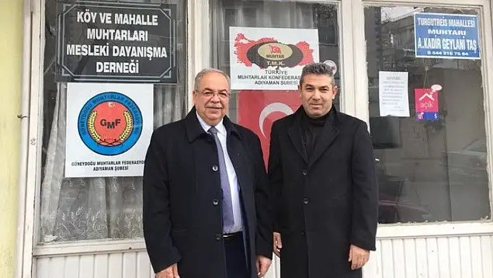 Adıyaman Belediye Başkanı Hüsrev Kutlu, oturduğu mahallenin muhtarı da olan Adıyaman Köy ve Mahalle Muhtarları Mesleki Yardımlaşma Derneği Başkanı Ahdulkadir Geylani Taş'ı ziyaret ederek mahallesinin ve muhtarların sorunları hakkında bilgi aldı.