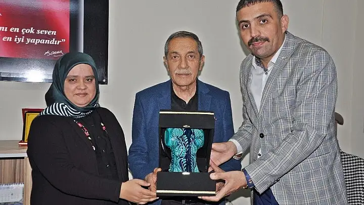 Konuşmalardan sonra Belediye Başkanı Yusuf Özdemir'e iş adamı Halil Doğan tarafından süs vazosu hediye edildi.