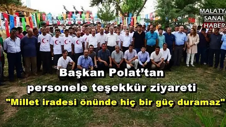 Başkan Polat kendisini Türk bayrağı ve ay-yıldızlık tişörtlerle karşılayan personelleriyle tek tek tokalaştıktan sonra tatlı ikramında bulunup, darbe girişime karşı sürdürülen çalışmalarda fedakarca hizmet eden personellere şükranlarını sundu.
