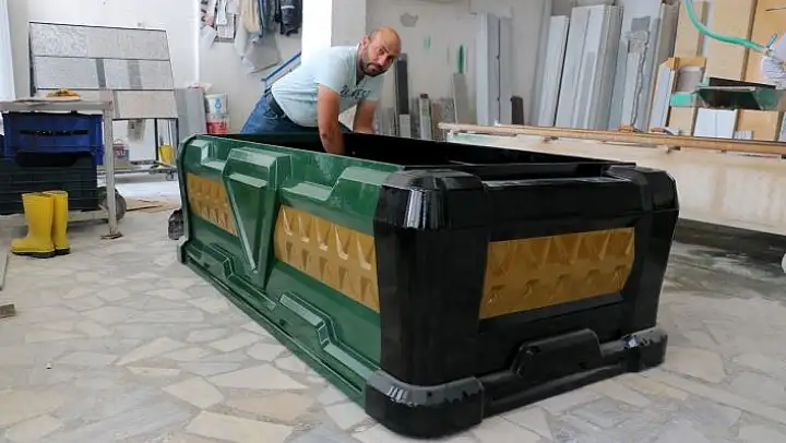 'Bu preste yapılıyor. Birkaç malzemenin karışımıyla yapılıyor. 5 parçamız 12 adet vidayla kurulumu yapılıyor. Talep fena değil. Çok iyi de değil kötü de değil. Çünkü yeni bir ürün olduğu için insanların alışması zaman alıyor. Bunu ağırlıklı batıda saksı mezar olarak kullanıyorlar. Fabrika dayanıklılığına 40 yıl garanti veriyor. Kasıt olmadığı sürece 40 yıl garantili. Sivas´ta tek benim, başka yapan yok´´ diye konuştu.